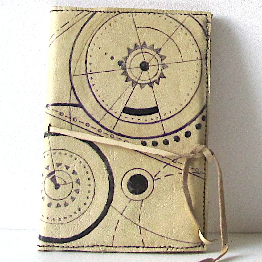 Pen and ink astronomical detail with leather tie fastening, and complete with A56note book