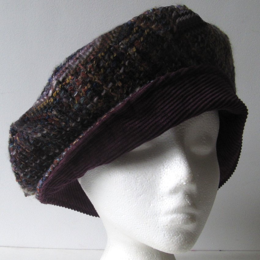 Wool blend basket weave with a purple corduroy brim and a lilac lining. Fits 55cm (21¾") to 60cm (23) head.