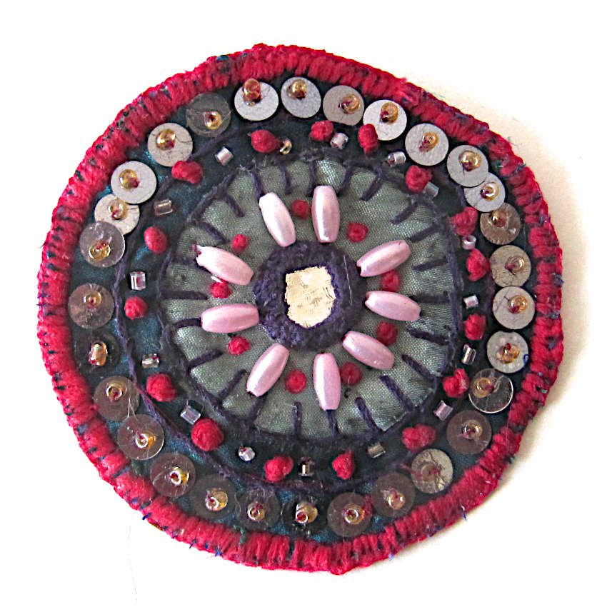 Delicate hand embroidered stitches, embellished with beads and a central mirror sequin